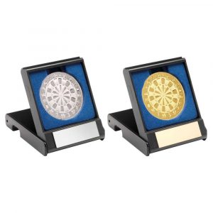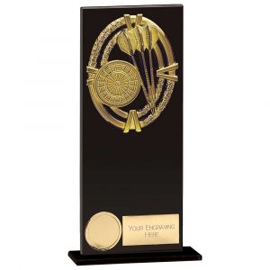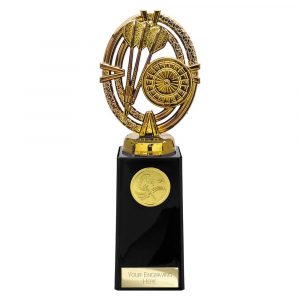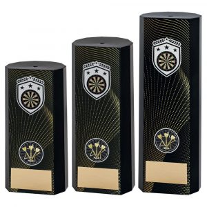 BLACK PLASTIC BOX WITH DARTS INSERT TROPHY – GOLD