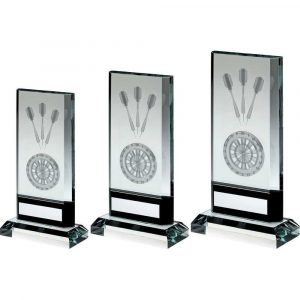 White & Silver Glass Shield Plaque With Darts Insert
