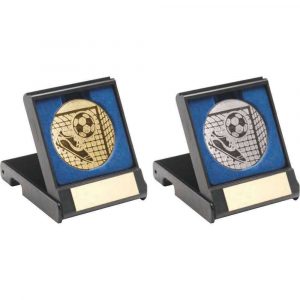 BLACK PLASTIC BOX WITH FOOTBALL INSERT TROPHY