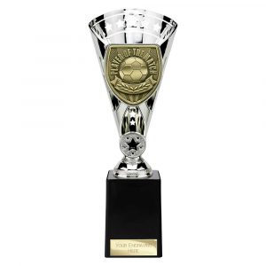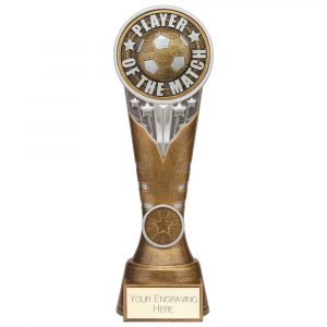 BRZ/GOLD MAN OF THE MATCH MINI CUP WITH FOOTBALL INSERT AND PLATE – 3.75in