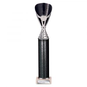 CREAM MARBLE AND SILVER TRIM TROPHY
