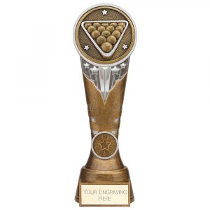 BRZ/GOLD/RED RESIN GENERIC ‘HERO’ AWARD WITH POOL/SNOOKER INSERT & PLATE – 7.25″