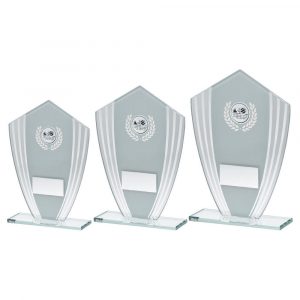 White & Silver Glass Shield Plaque With Volleyball