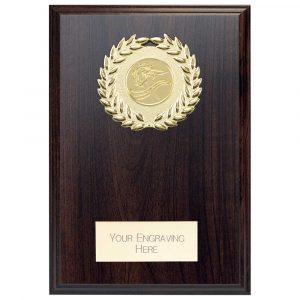 ROSEWOOD PLAQUE AND GOLD TRIM TROPHY