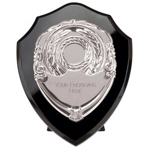 ROSEWOOD SHIELD AND SILVER TRIM TROPHY