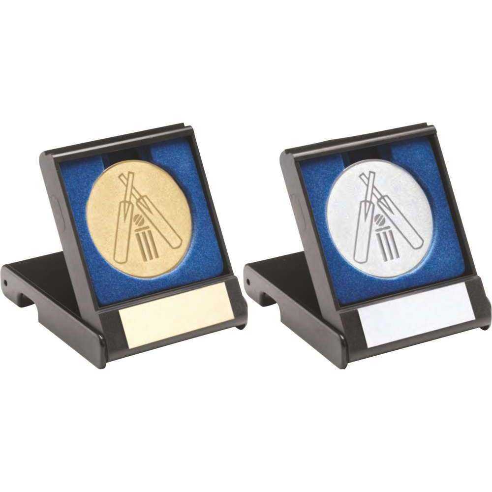 BLACK PLASTIC BOX WITH CRICKET INSERT TROPHY