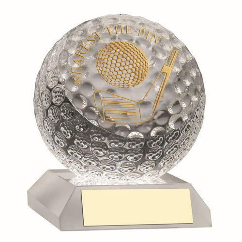 CLEAR GLASS GOLF BALL WITH PLATE NEAREST THE PIN – 3.75in