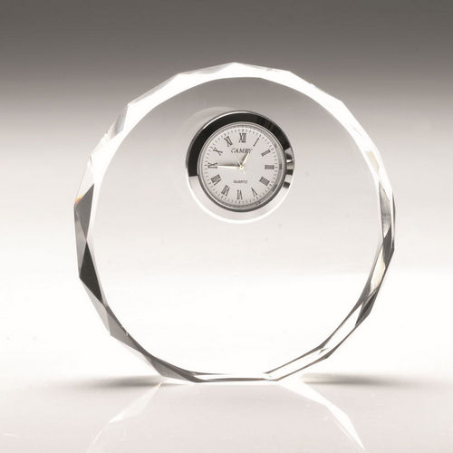 CLEAR GLASS ROUND CLOCK (20MM THICK) – 4.5in