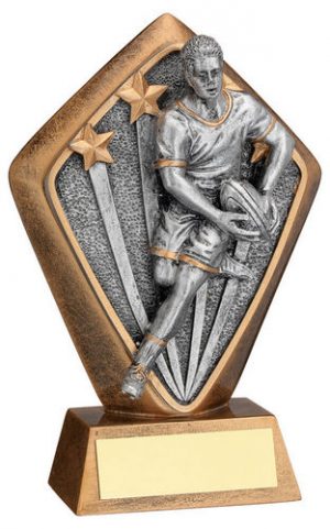 GOLD MALE RUGBY DISC ON CREAM MARBLE TROPHY