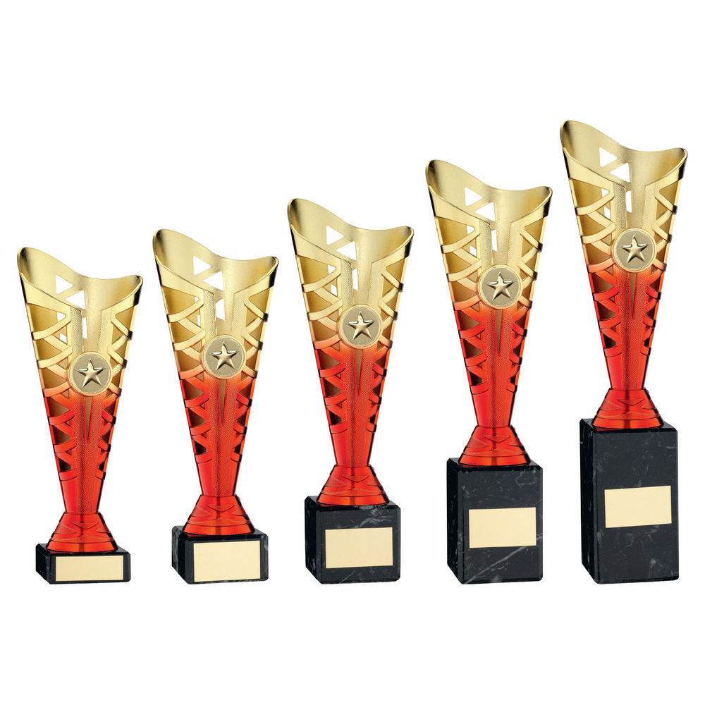 GOLD/RED TITAN CUP ON BLACK MARBLE TROPHY