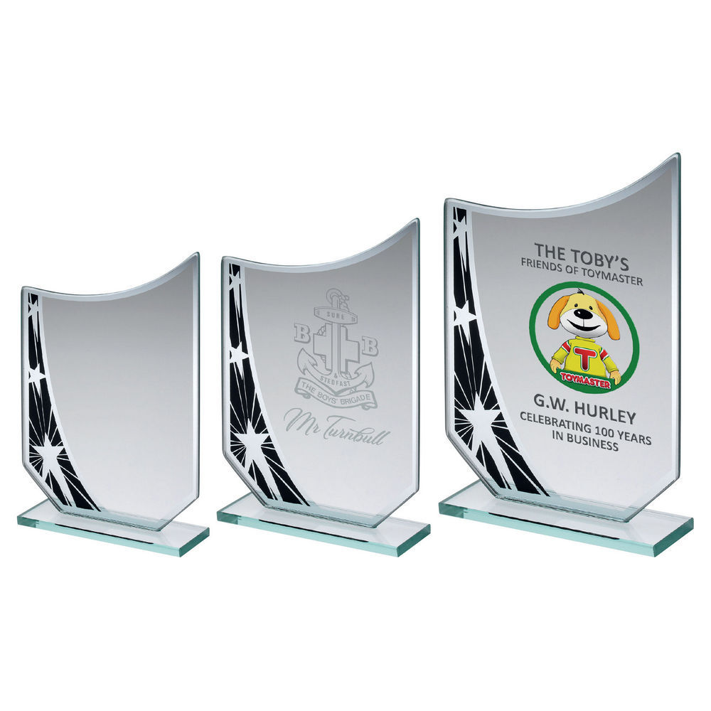 Be the first to review “Jade Glass Curved Plaque With Black/Silver Star Design (4Mm Thick) – 6.5In”