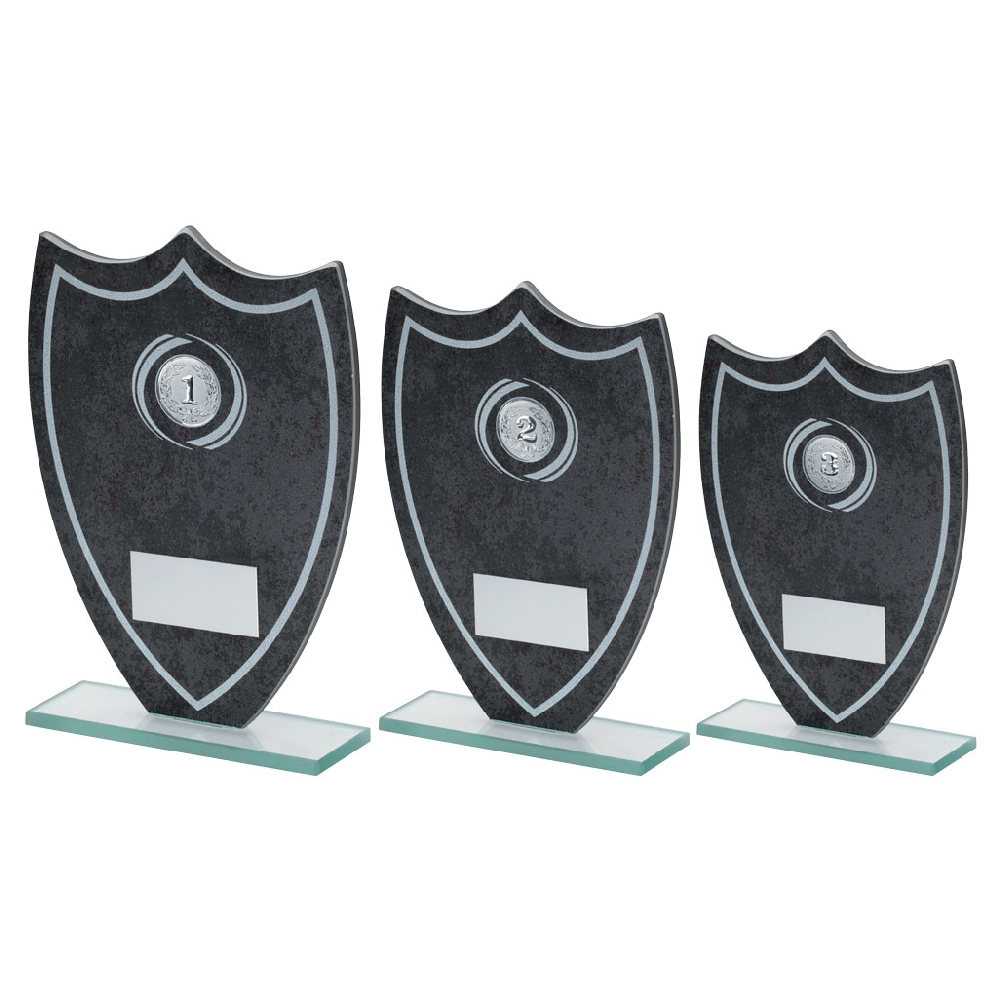 Stone Effect Glass Shield With White Wreath & Lines + Plate (1In Cen) – 6.5In