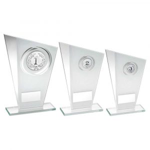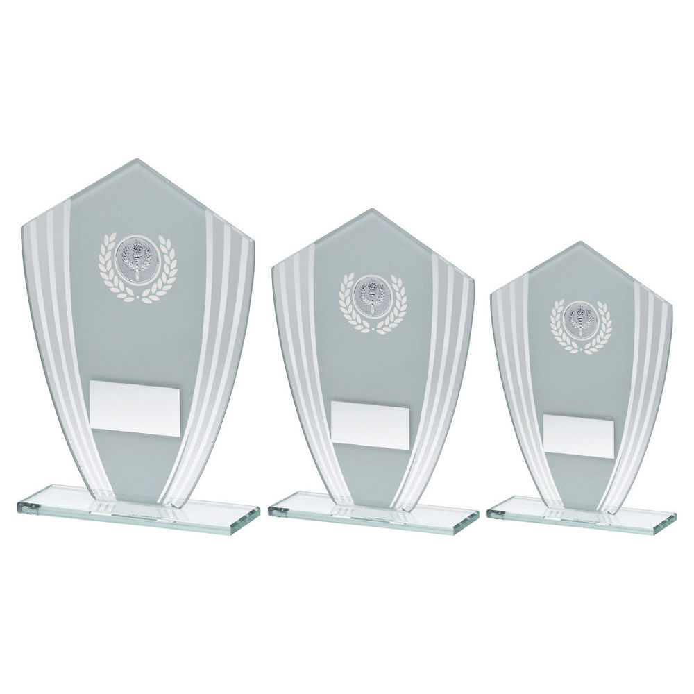 WHITE & SILVER GLASS SHIELD PLAQUE