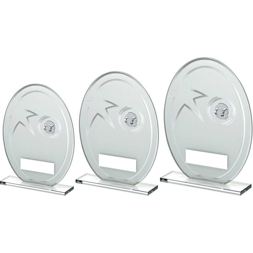 WHITE/SILVER PRINTED GLASS OVAL WITH LAWN BOWLS INSERT