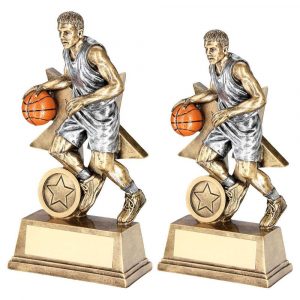 BRZ/PEW/ORANGE MALE BASKETBALL FIGURE WITH STAR BACKING TROPHY
